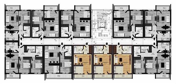 Planograma cu dispunerea garsonierelor pe etaj. Garsonierele sunt disponibile la etajele 1,2,3,4,5,6,7 si 8